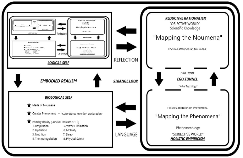 Humans have the distinct ability to create highly detailed maps of their surroundings. This map making ability turned inwards - this is what we call Consciousness and it isn’t mysterious. However, the problem for the Reductive Rationalist and the Holistic Empiricist alike is that the Strange Loop has to have an origin somewhere, and that somewhere is in the Noumena - the ineffable Noumena. If you follow the Logic to its logical end, you find yourself in a position where you have to say that you are using Logic to explain the origin of Logic itself - it’s the Münchhausen Trilemma all over again. It’s the Liar’s Paradox. It’s Gödel's Incompleteness Theorems. Human Logic creates paradox. In this scenario, only the Skeptical Perspective Logically prevails - Taking the Skeptical Perspective, which I call ‘1% Arguments’, will always win in a Logical argument. This explains why Science can never claim Certainty about anything, but can still prove things wrong in an Empirical way. This also explains why meanings and concepts are fuzzy and that sometimes you can’t definitively describe anything with precision, but you can also “know it when you see it”. This is where the problems of Philosophy begin and end.