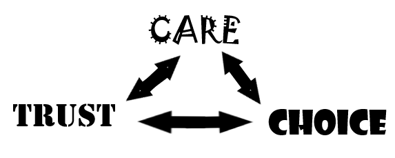 CARE: to feel interest or concern; TRUST: to place confidence in; CHOICE: power of choosing